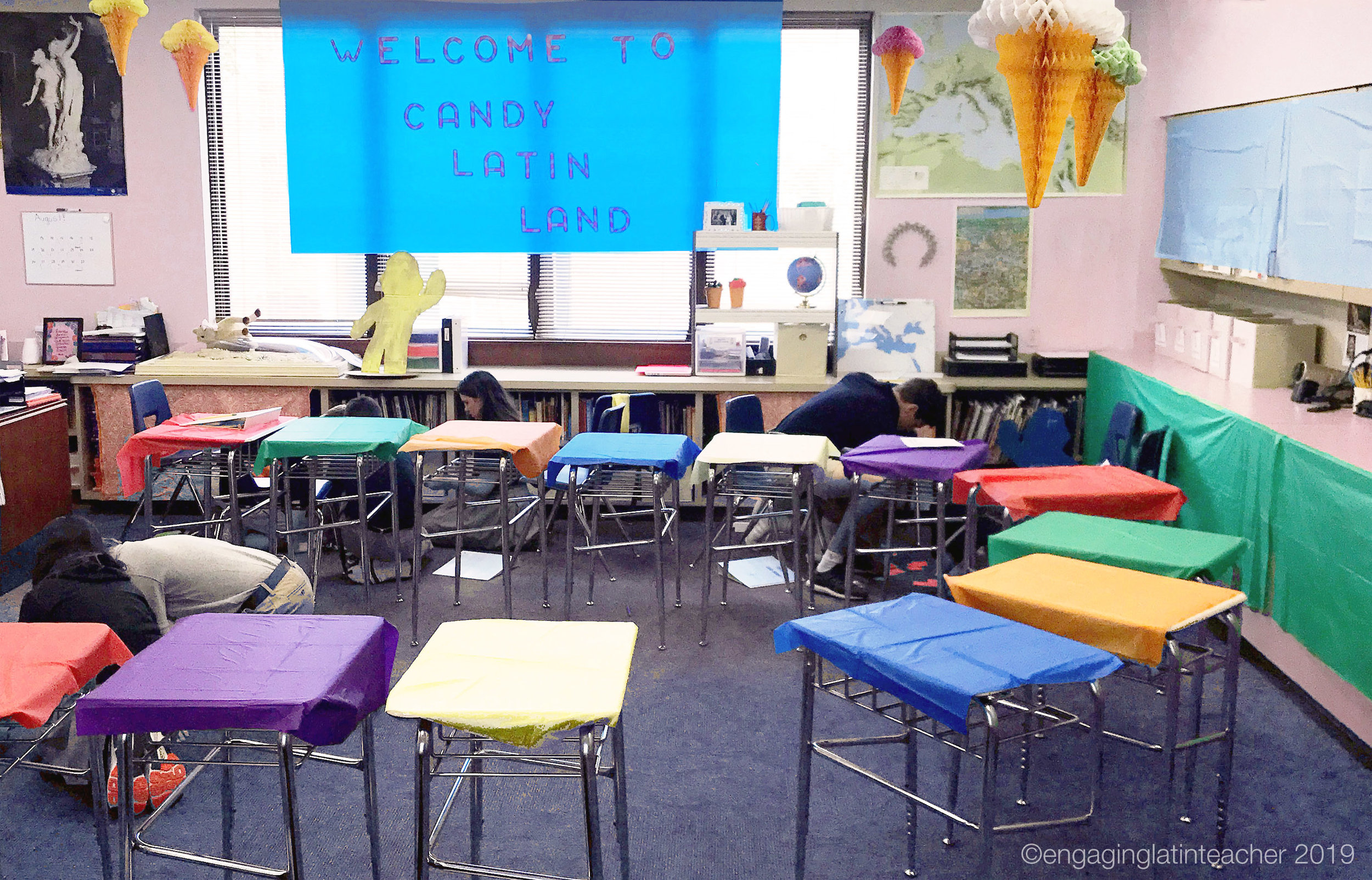 This past school year I wanted to spend more time on classroom procedures, so I set aside the first 6 days of school for nothing but student expectations. We went through every activity we'll do regularly in class, including frequent games like how quickly I expect you to log on to Quizizz as well as how to successfully complete a less frequent classroom transformations. I LOVE doing classroom transformations, they are my main reason I love what I do, and my worst nightmare is that students won't love it, won't react well, or melt into chaos that prevents them from enjoying it. And so, I created a day to review our classroom expectations and present the procedures for a classroom transformation day. Having seen Chris Pombonyo and Hope King each do a Candyland classroom transformation, and given my predilection for sweets, I knew this had to happen. It might seem oxymoronic to try to implement middle school classroom procedures within a sugared, outlandishly decorated experience, but because I transform my room frequently, it’s important that my students follow typical rules regardless of the state of the classroom.